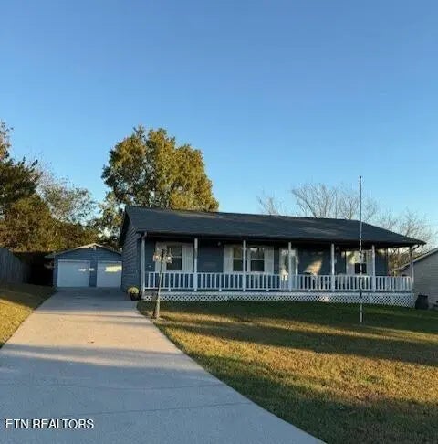 This home features large front porch across the entire front of home, ready to install your swing. Out the large kitchen door that opens to screened porch that opens to deck, fenced yard and seasonal mountain view. Not only does the ramp from screened porch go to large carport, but also a fabulous detached two car garage with room for workshop or storage. It has a water softener and all appliances including washer and dryer. Large pantry in kitchen. Perfect for first time buyers. Includes home warranty.